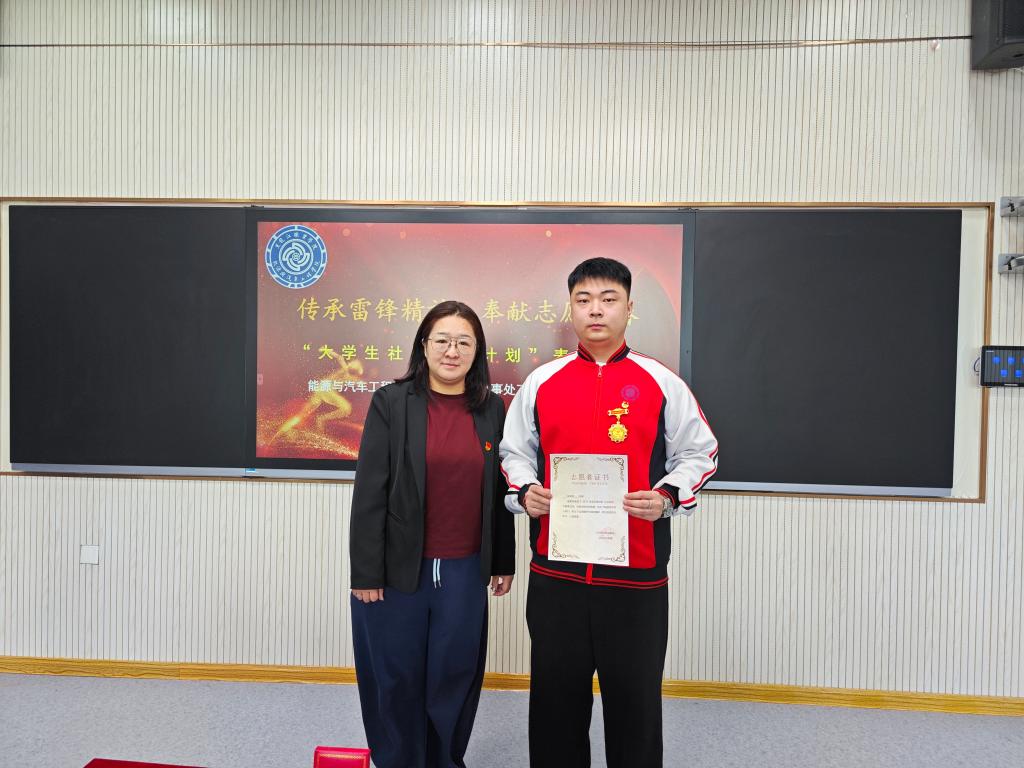 在本次会议上,哈西街道办事处工力所社区授予能源与汽车工程学院“大学生进社区优秀团体”称号,同时为宋泽昊同学颁发2024年度“最佳志愿者”徽章,并为其他5位学生代表颁发了志愿者证书。
