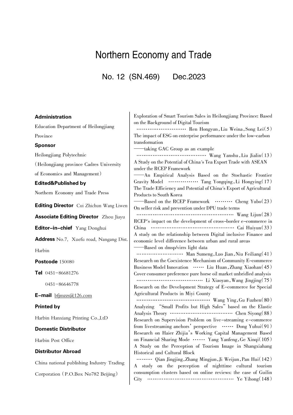《北方经贸》2023年十二月刊