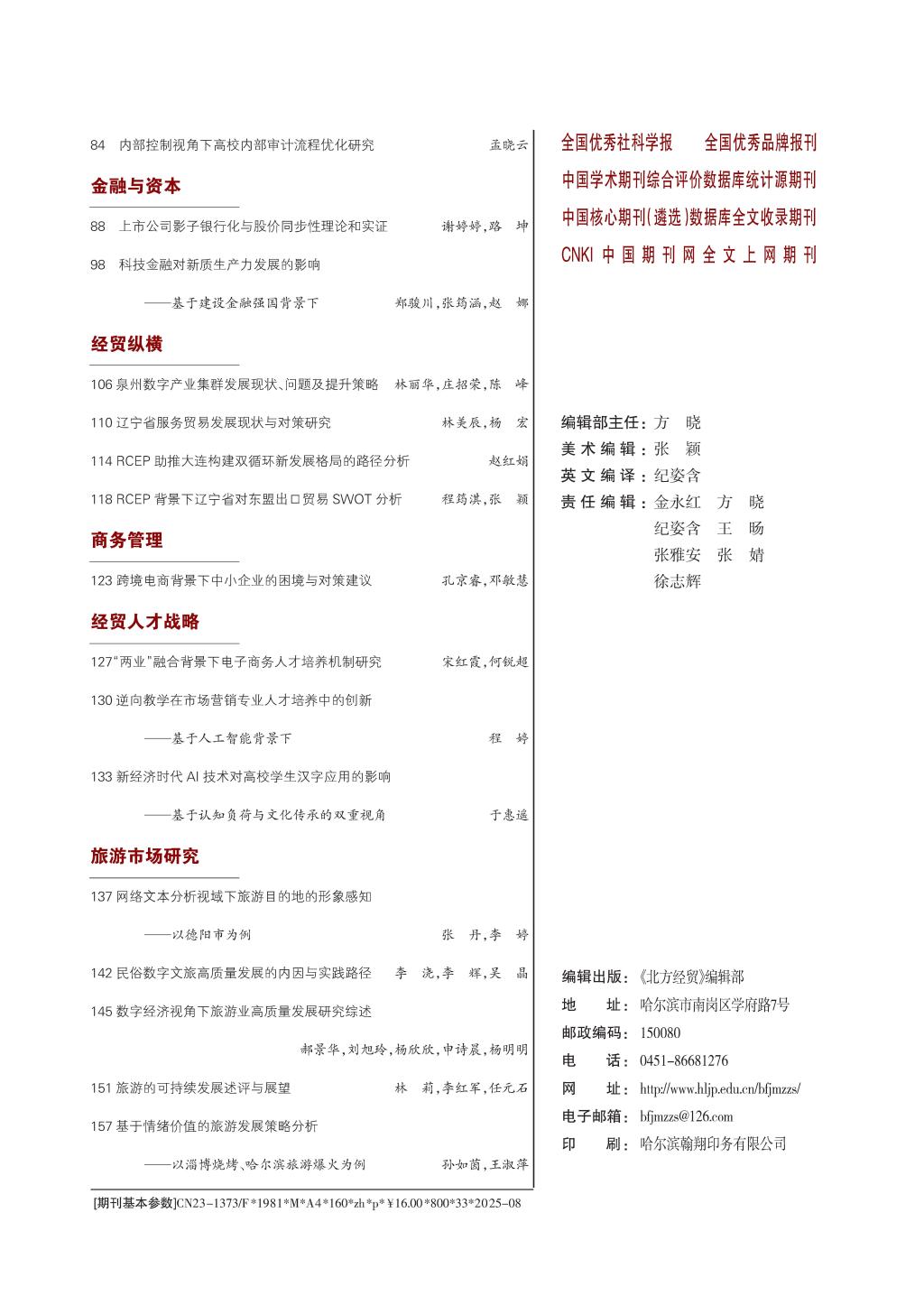 版权所有:北方经贸杂志社 地址:黑龙江省哈尔滨市南岗区学府路5号 邮编150080 电话:0451-86681276 86646778 邮箱:bfjmzzs@126.com