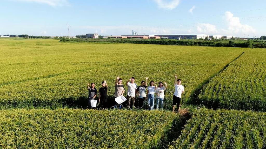 ▲“龙门御水——稻渔共生创新引领者”在稻田里进行项目实验