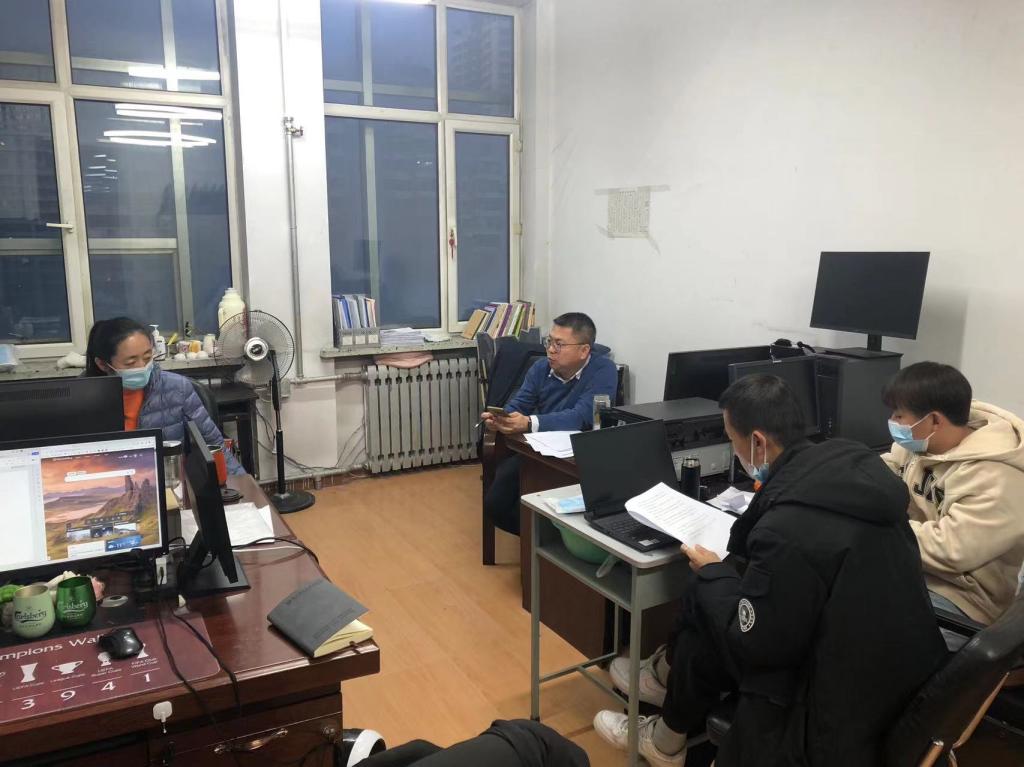 ▲建筑工程学院郭洪江老师在办公室指导“钢轨卫士——纳米绝缘有机聚合物胶粘剂”项目现场