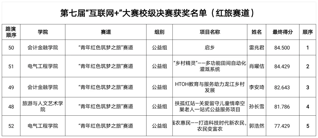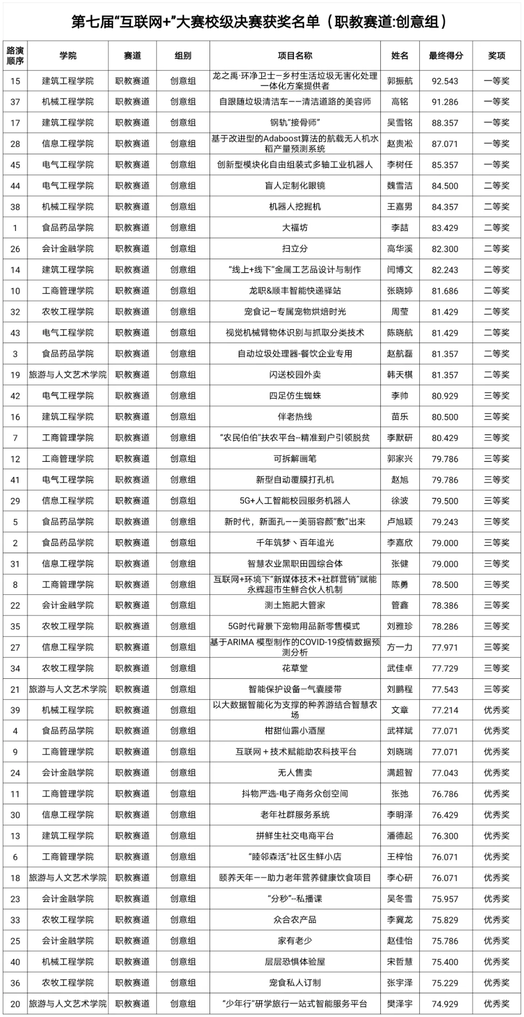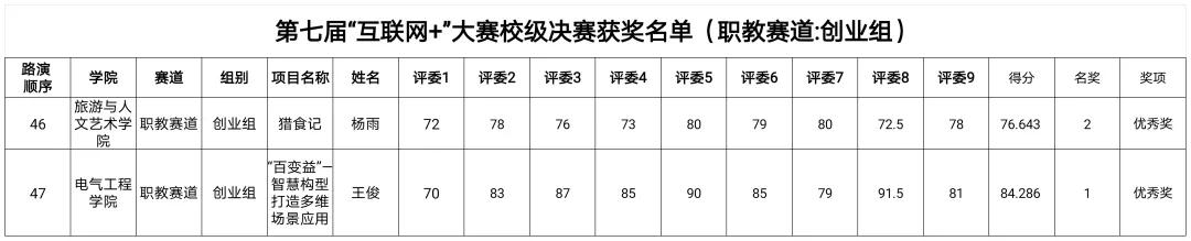 第七届“互联网+”大赛校级决赛获奖名单