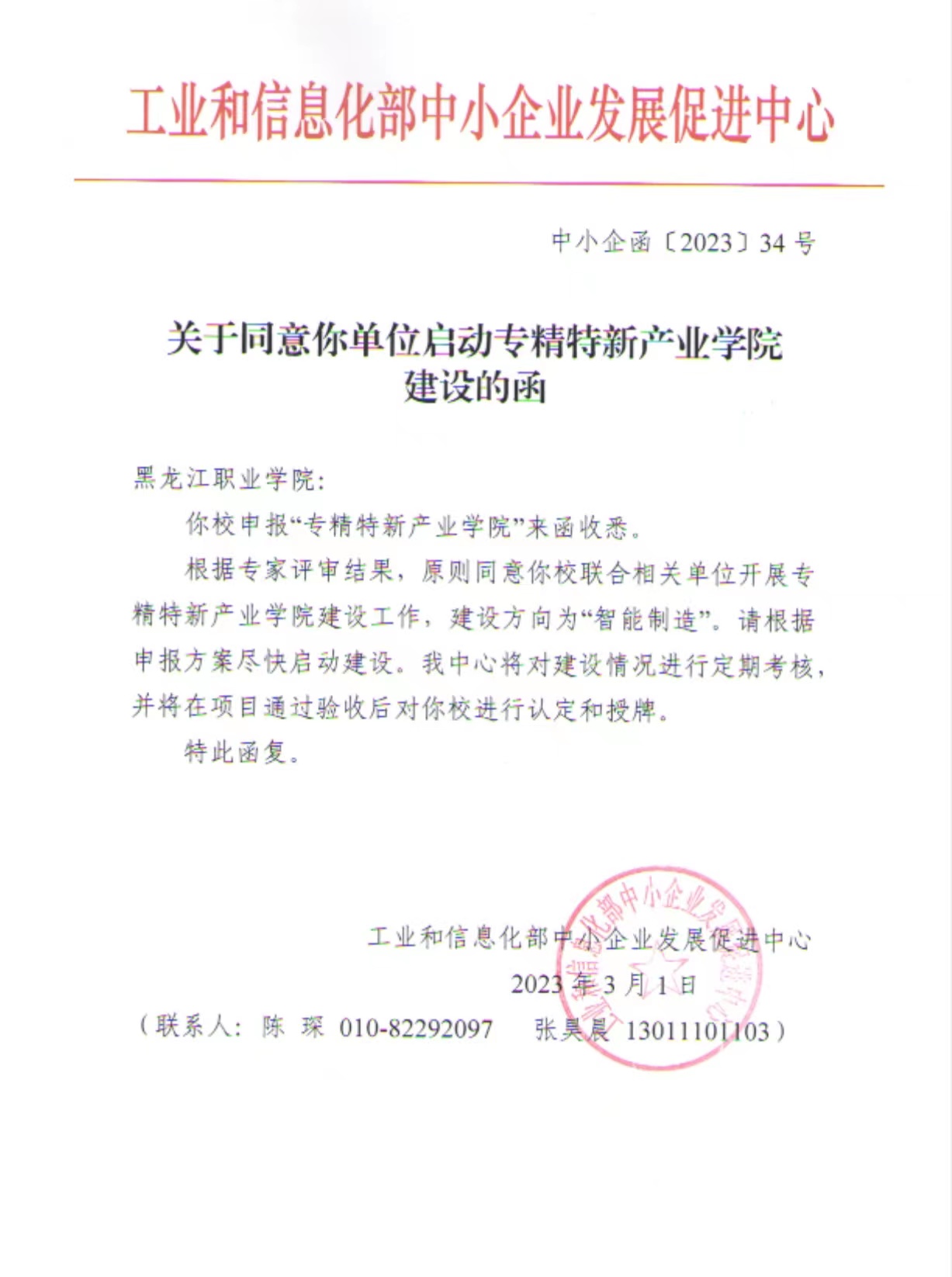 此次申报工作,学校党委高度重视,校领导全程指导,科研与校企合作处、学校办公室给予政策和文件辅导。根据《专精特新产业学院建设指南(试行)》要求,智能制造技术学院联合专精特新企业哈工大机器人创新中心有限公司、黑龙江省中小企业发展服务中心和黑龙江省中小企业协会共同申报“bevictor伟德官网智能制造专精特新产业学院”。