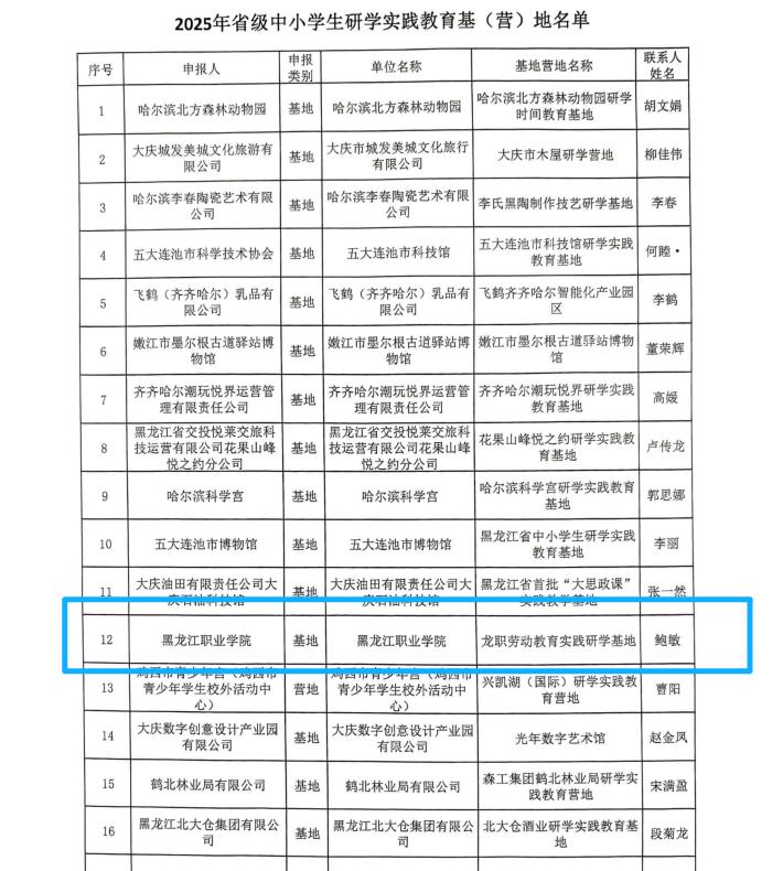 近日,分院根据省教育厅印发《黑龙江省中小学生研学(劳动)...