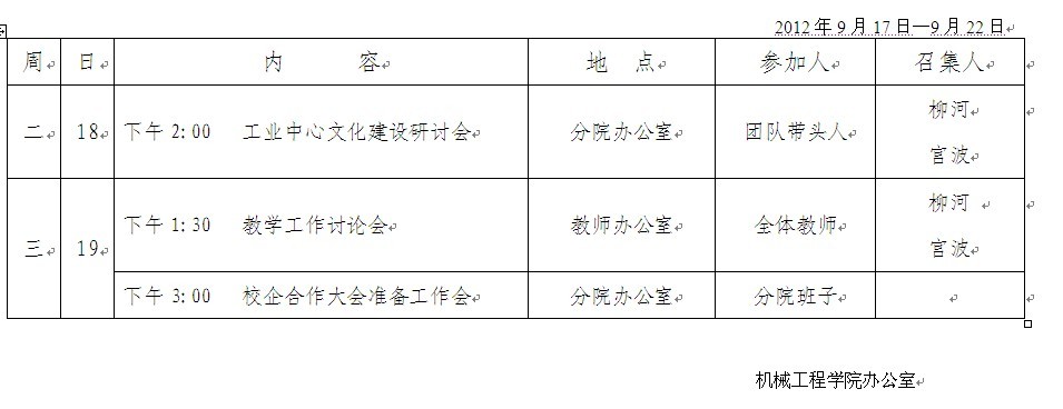 第三周活动安排表