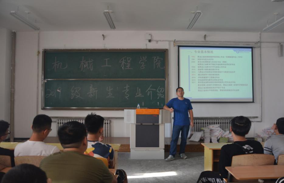 机械制造与自动化专业的见面会还邀请了合作企业哈尔滨东安实业发展有限公司人力资源部张学峰副部长为新生们介绍了龙江航空制造企业的发展状况以及东安实业公司与伟德官网开展现代学徒制的情况,他热烈欢迎19级新同学有机会到企业进行参观学习,并邀请有志为龙江航空制造业奋斗的学生进入学徒制试点班学习。