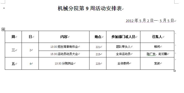 机械分院第九周重点工作推进表