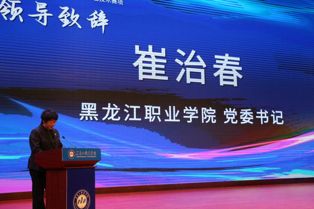 黑龙江省教育厅二级巡视员丁哲学为获得大赛一等奖的选手颁奖