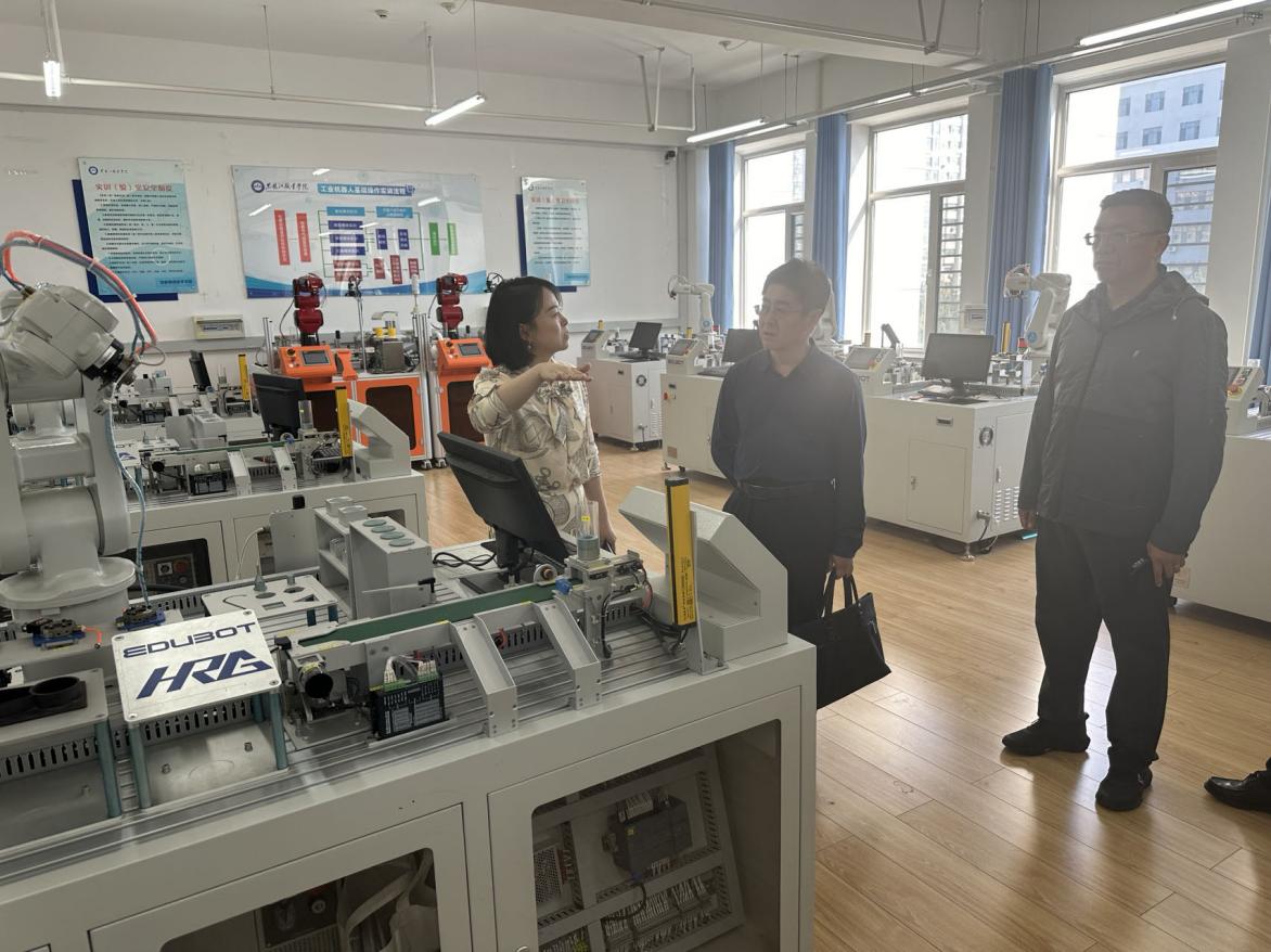 调研组参观了智能制造技术学院工业中心、工业机器人训练中心、工业机器人虚拟仿真实训基地,实地考察了数控车、钳工、数铣、多轴加工、增材制造、工业机器人应用编程、工业机器人行业应用等实训室和技能大师工作室。在参观过程中,郑劼代表调研组对学校的校园环境、实训室条件、教学设备配置等给予高度评价。