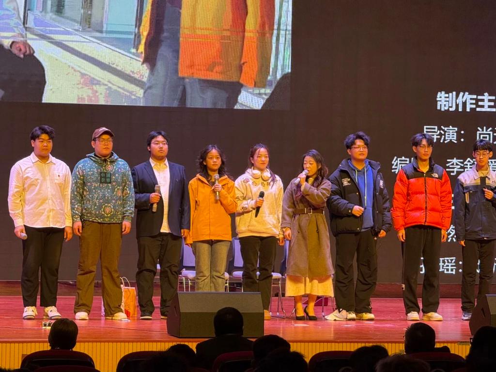 12月3日,智能制造技术学院学生会关心委主任李舒媛和副主任曹博琛带领2025级大一同学:王迪、陈玉颖、赵欣雨、梁新扬、董赫、邹博、田世强、刘宏瑞、李士乐共同参加校园心理情景剧比赛,他们怀揣热忱奔赴舞台之约。心灵的故事以舞台为笺,青春的赤诚用演绎作答,大家以心为笔,以情为墨,在聚光灯下演绎青春困惑与成长力量,为现场观众带来了一场直击心灵的视听盛宴 。