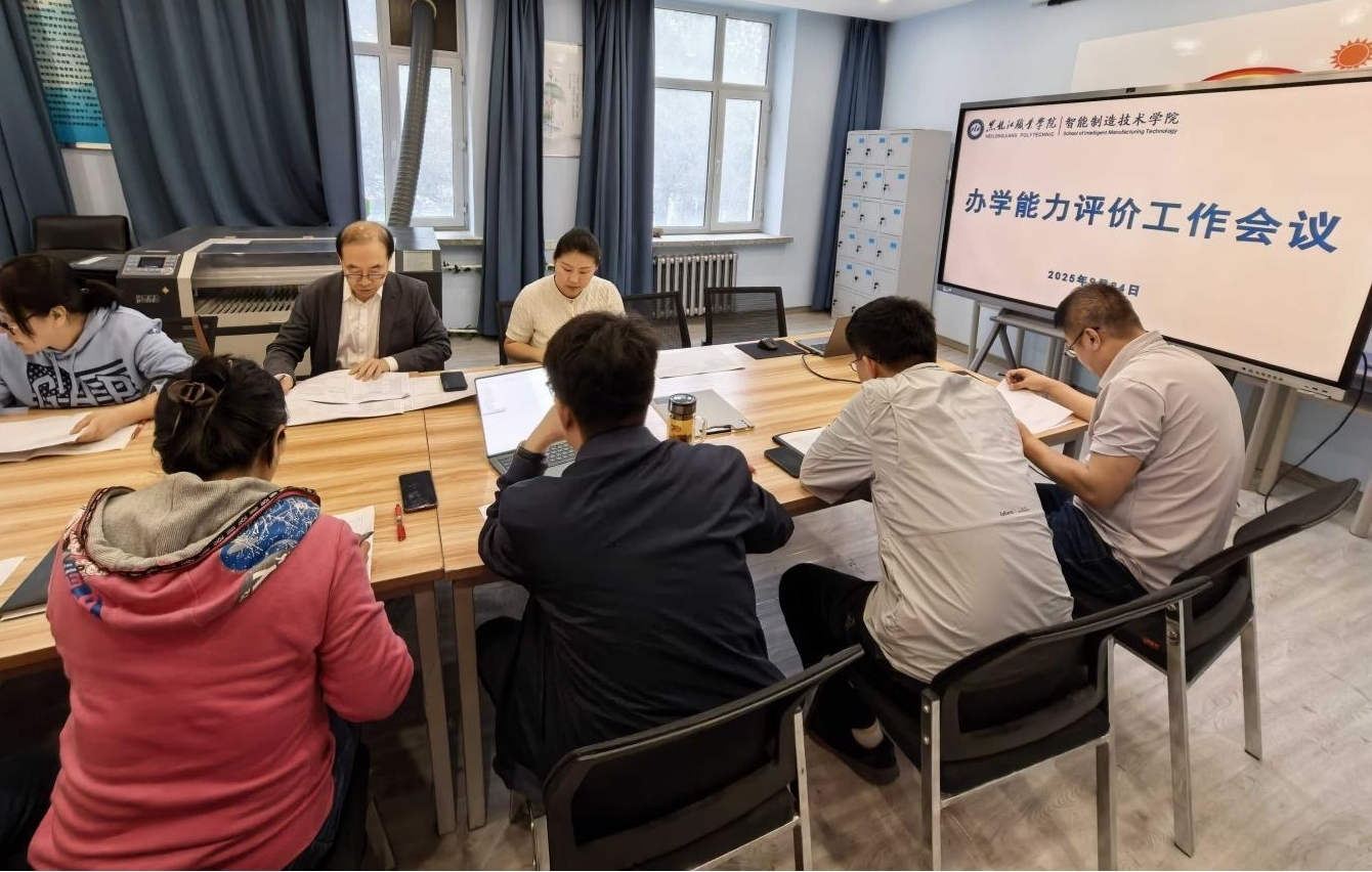 2025年9月24日,智能制造技术学院召开办学能力评价工作会议,院长李子峰、副院长于雪梅,教学办主任薛文,各专业主任及负责人,技能大师参会。