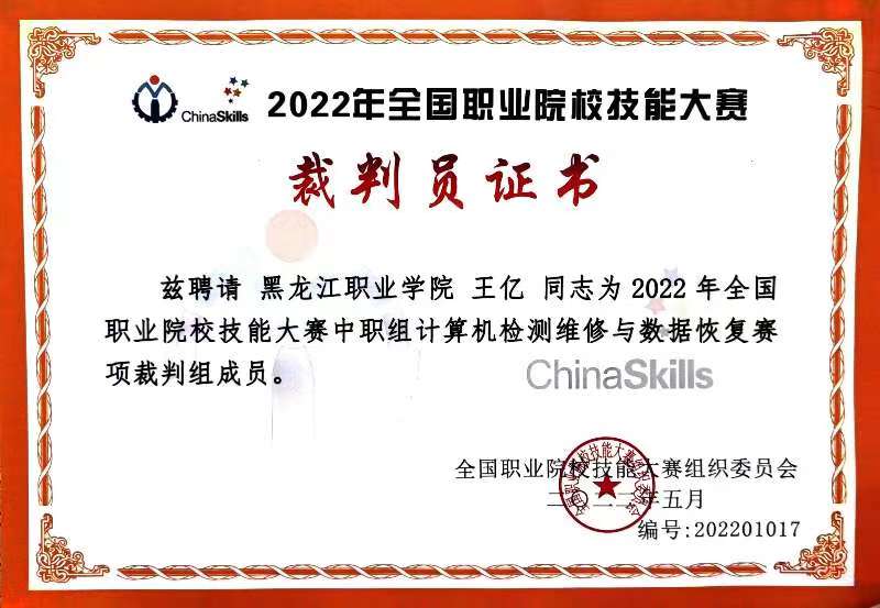 通过多年以来在国赛的执裁和交流,王亿老师展示了伟德官网教师的风采,扩大了伟德官网的知名度,积累了国赛组织、筹备经验,并对计算机检测维修与数据恢复技术最新发展动态有了深入了解。同时也加强了与其他省市高职院校专家的交流,对伟德官网专业建设与发展及竞赛指导具有积极意义。
