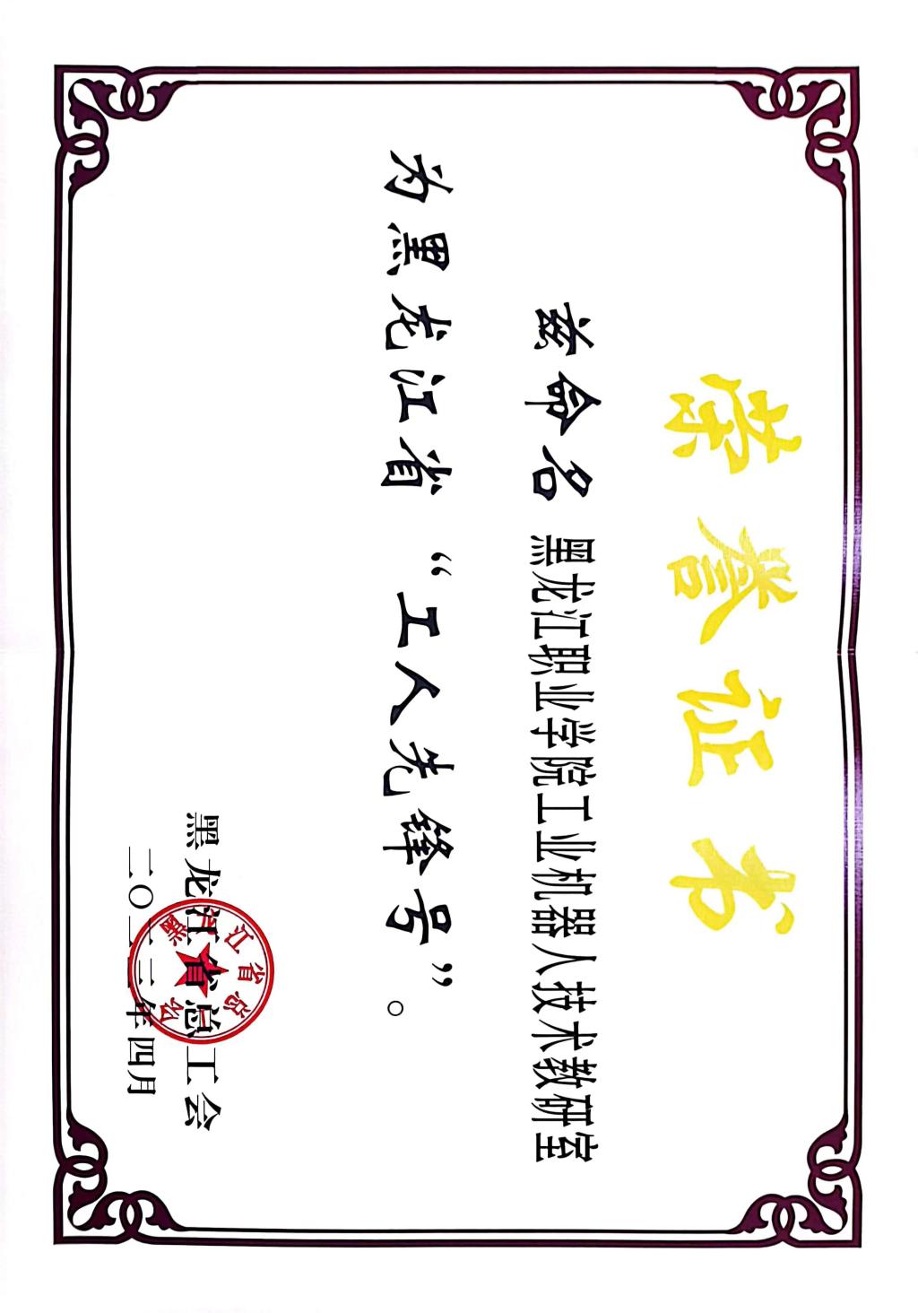 近日,在黑龙江省总工会组织开展的2023 年黑龙江省五一劳动奖和黑龙江省工人先锋号表彰中,授予伟德官网智能制造技术学院工业机器人技术教研室黑龙江省工人先锋号荣誉称号,此次评选,学校党委高度重视,校工会全程给予指导。