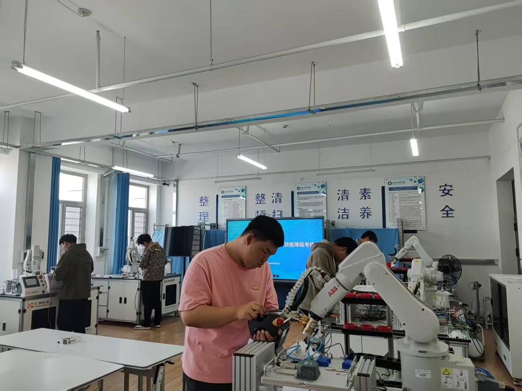 2025年4月25日-2025年4月26日,工业机器人应用编程“1+X”职业技能等级证书考核工作在工匠楼502、513室举行。本次考核分为理论考试、实操考试两部分,来自工业机器人技术专业共49名学生参加了此次初级考核,通过率96%。
