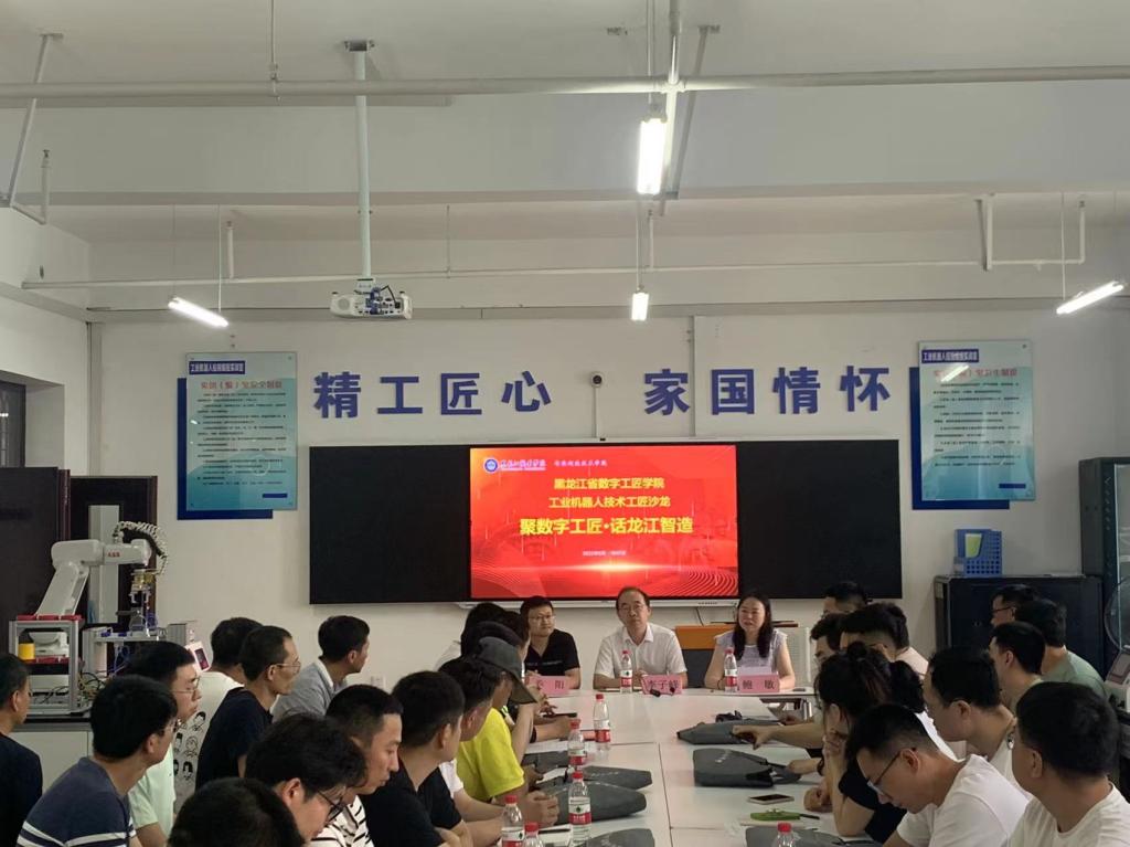 2023年6月29日,智能制造技术学院举办以“聚数字工匠·话龙江智造”为主题的黑龙江省数字工匠学院工业机器人技术工匠沙龙活动。智能制造技术学院院长李子峰、智能制造技术学院副院长鲍敏、工业机器人技术教研室负责人乔阳、省数字工匠学院工业机器人技术培训班全体参训学员参加此次工匠沙龙活动。