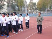 电气自动化试点班班主任院党委副书记张玉山同志带领学生跑早操