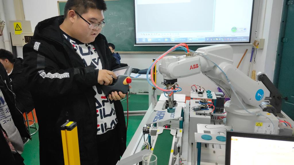本次社团活动由指导老师乔阳带领大一、大二社团成员学习了工业机器人物体的搬运码垛技术和PLC的使用方法,课上进行了第二次省赛大一选手筛选工作。