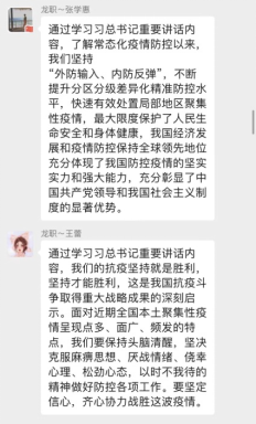 此次主题党日活动依托学习强国、钉钉语音会议及微信群开展,由分院党总支书记敖冰峰同志带领全体党员深入学习贯彻习近平总书记关于疫情防控工作的重要讲话、重要指示精神并传达了学校疫情防控工作会议精神,同步部署疫情防控工作,以党建为引领推动“线上”“线下”同频共振,确保疫情防控不打折,党员学习不间断。
