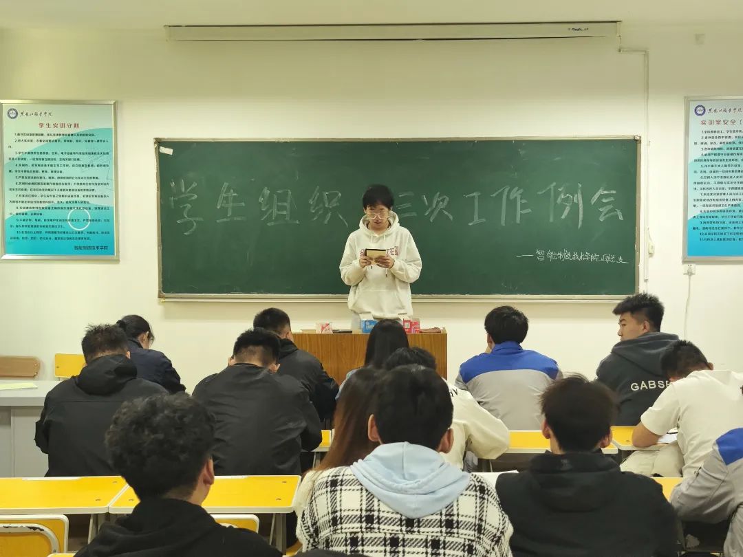 为更好发挥学院学生组织能动性,服务广大同学群众,更好发挥学生组织的服务职能。智能制造技术学院团总支于2023年10月17日中午12:00时,在工坊楼301室召开2022级学生组织第三次工作例会。本次会议由团总支书记姜玲老师出席并主持,2022级学生组织全体成员参加本次会议。