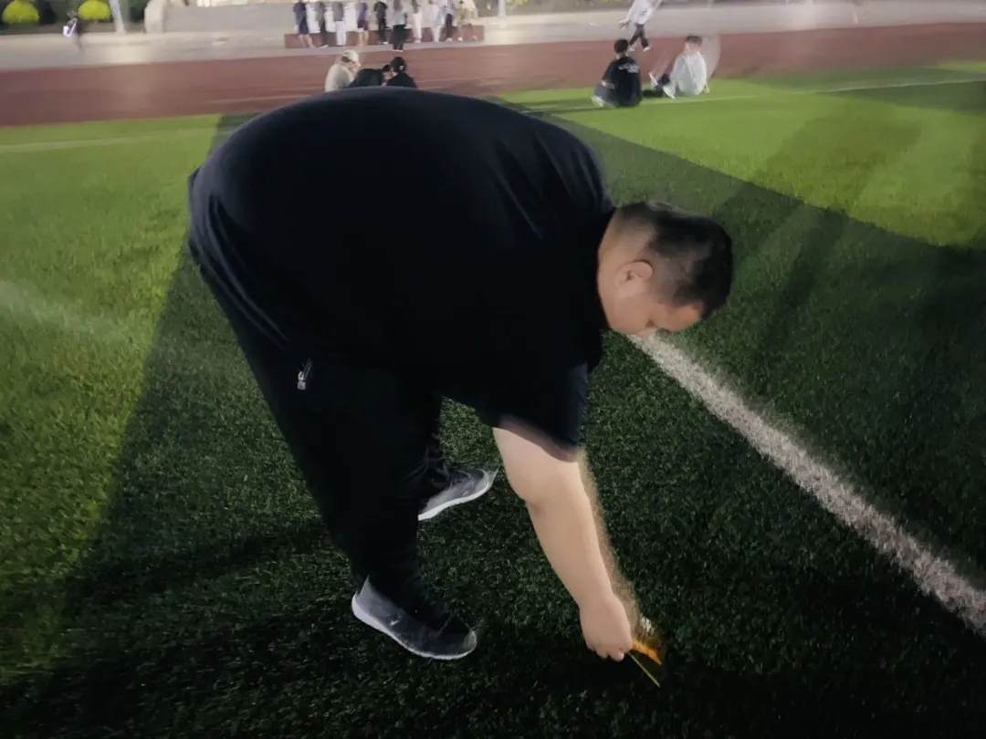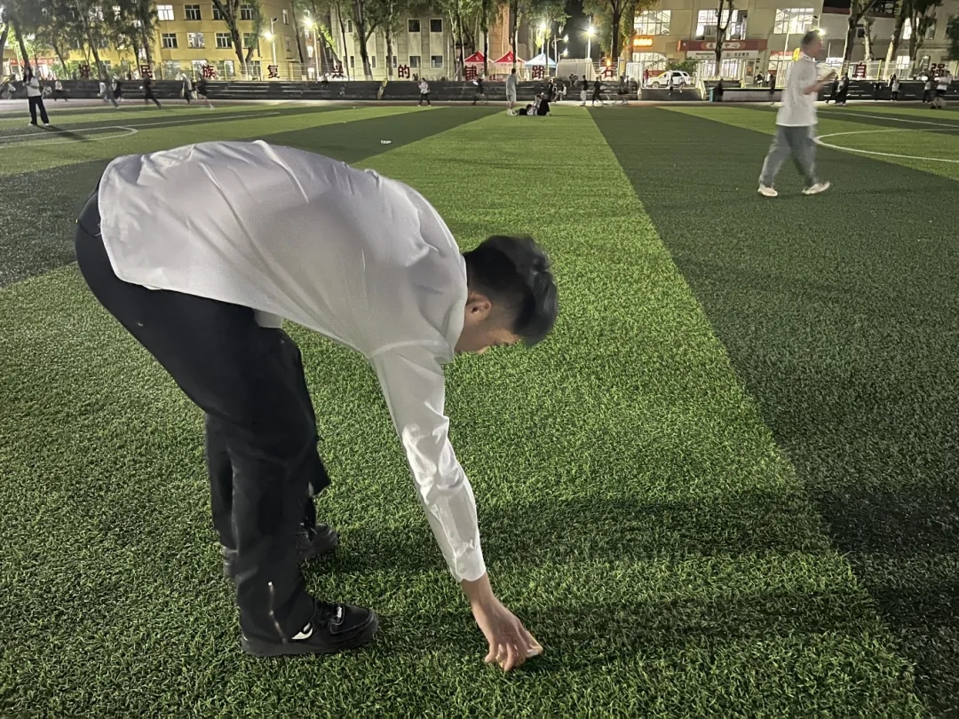 于当晚8:40分,我们再次在清华楼下集合,对操场进行二次清扫与检查。大家确保每一个角落都清洁干净,不留任何死角。让我们携手共进,为全校师生创造一个干净、整洁的操场环境,为学校的环境建设贡献我们的青春力量。让我们共同为美好的校园环境努力!
