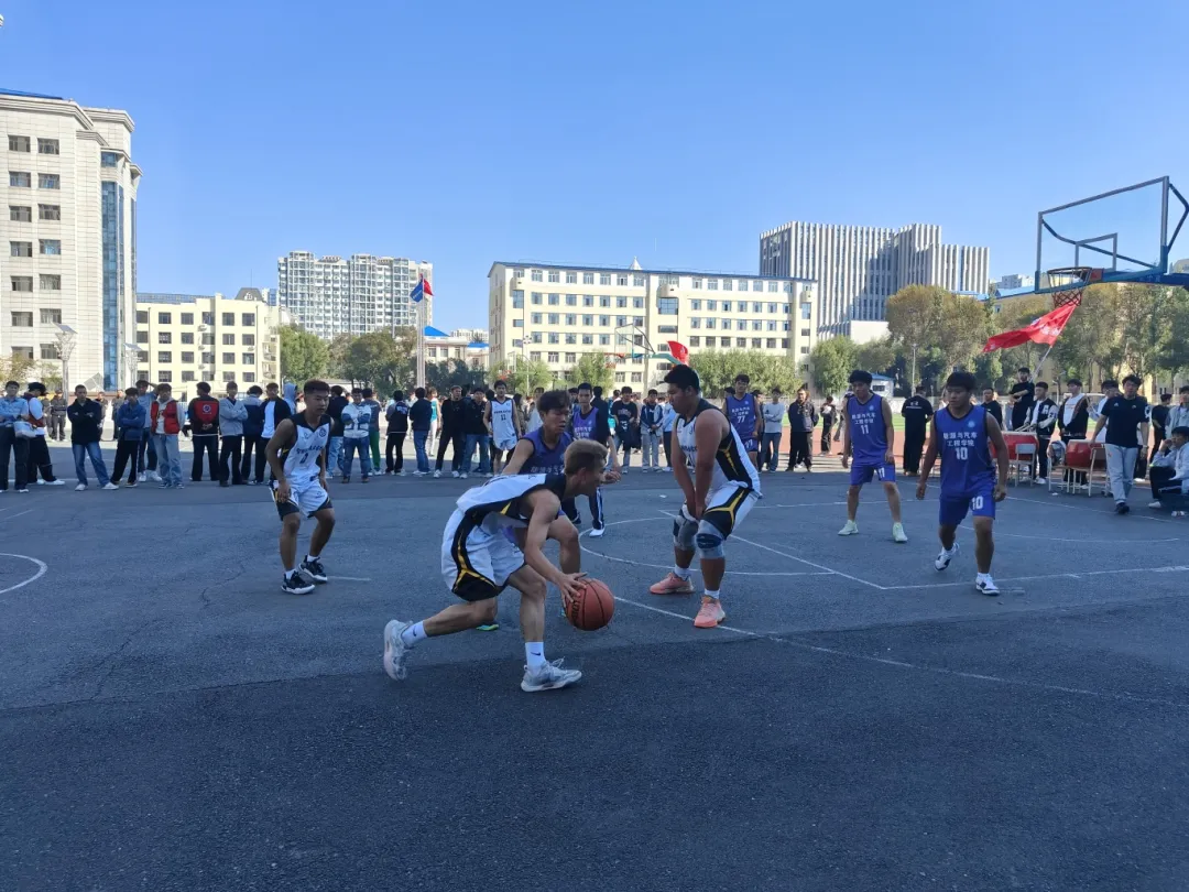 我院球员们英姿飒爽,奋力拼搏。他们运球、传球、投篮,每一个动作都展现出精湛的技艺和顽强的斗志。观众们的欢呼声、加油声此起彼伏,整个篮球场都沉浸在热烈的氛围中。各参赛队伍秉持着“友谊第一,比赛第二”的原则,在赛场上互相尊重,互相学习!