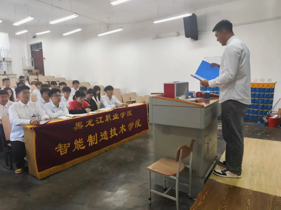 介绍出席本次会议人员:智能制造技术学院团总支书记姜玲,团总支(教师)副书记韩玉,团总支学生副书记高彦琦,学生会主席陈明, 智能制造技术学院2023级学生会全体学生干部。