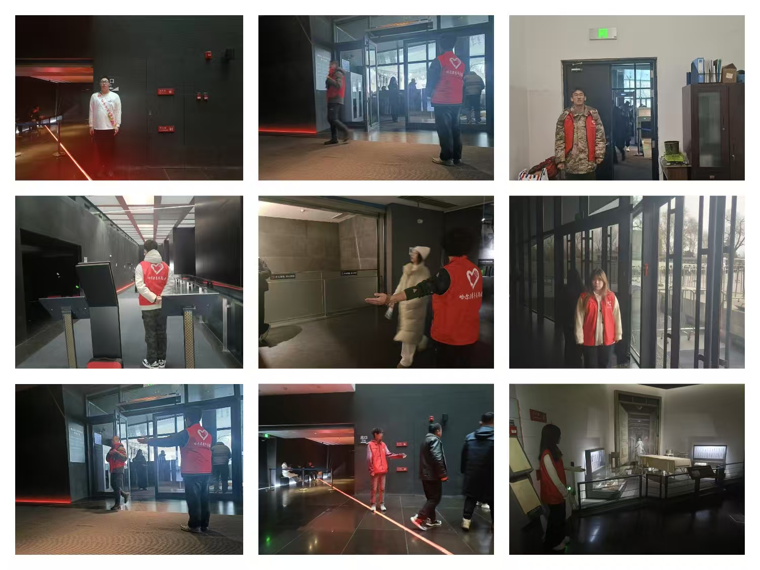 在活动中,志愿者们为参观游客提供引导服务,帮助他们找到入口、寄存行李等,在馆内引导游客参观各个展厅,维持参观秩序,提醒游客遵守规则,确保参观过程的顺畅和安全。