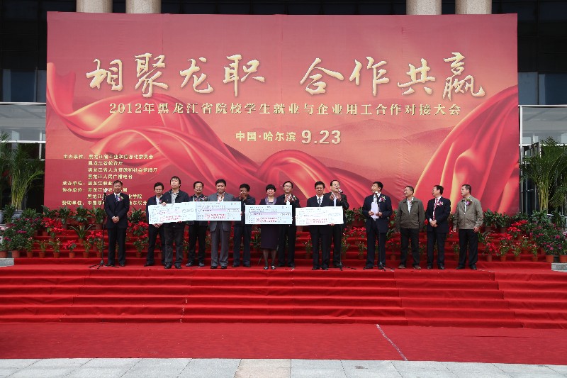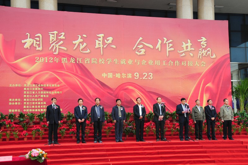9月23日,由省工信委、省教育厅、省人力资源和社会保障厅、黑龙江人民广播电台联合主办,我院承办的以“相聚龙职、合作共赢”为主题的2012年黑龙江省院校学生就业与企业用工合作对接会在学院隆重举行。省工信委党组书记贲起利、常务副主任庞光明,省人力资源和社会保障厅副厅长董绍林,黑龙江人民广播电台专职编委韩巨生,省农垦总局副局长谭占龙,省教育厅学生处处长张明华,bevictor伟德官网书记冯玉龙、院长赵继会,黑龙江信息技术职业学院院长武英举以及中国移动哈尔滨分公司党委书记、总经理潘景波出席大会。262家省内外重点骨干企业和省内101所院校代表及各高校应届毕业生参加此次会议。会议由省工信委纪检组组长王涛同志主持。