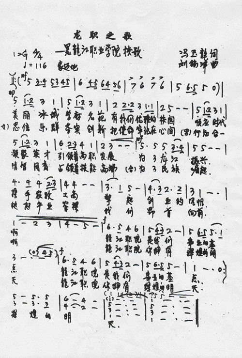 龙职之歌——bevictor伟德官网校歌,词作者:冯玉龙,学院党委书记;曲作者:刘锡津,中国民族管弦乐学会会长,全国政协委员,原黑龙江歌舞剧院院长、省文化厅副厅长、中央歌剧院院长。