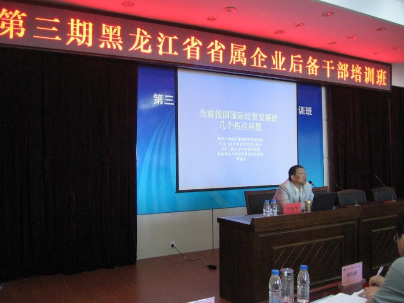 9月14日,北京科技大学贾建华教授应邀来到学院,为学院主办的第三期黑龙江省省属企业后备干部培训班做了题为《当前我国国际经贸发展的几个热点问题》的专题讲座。