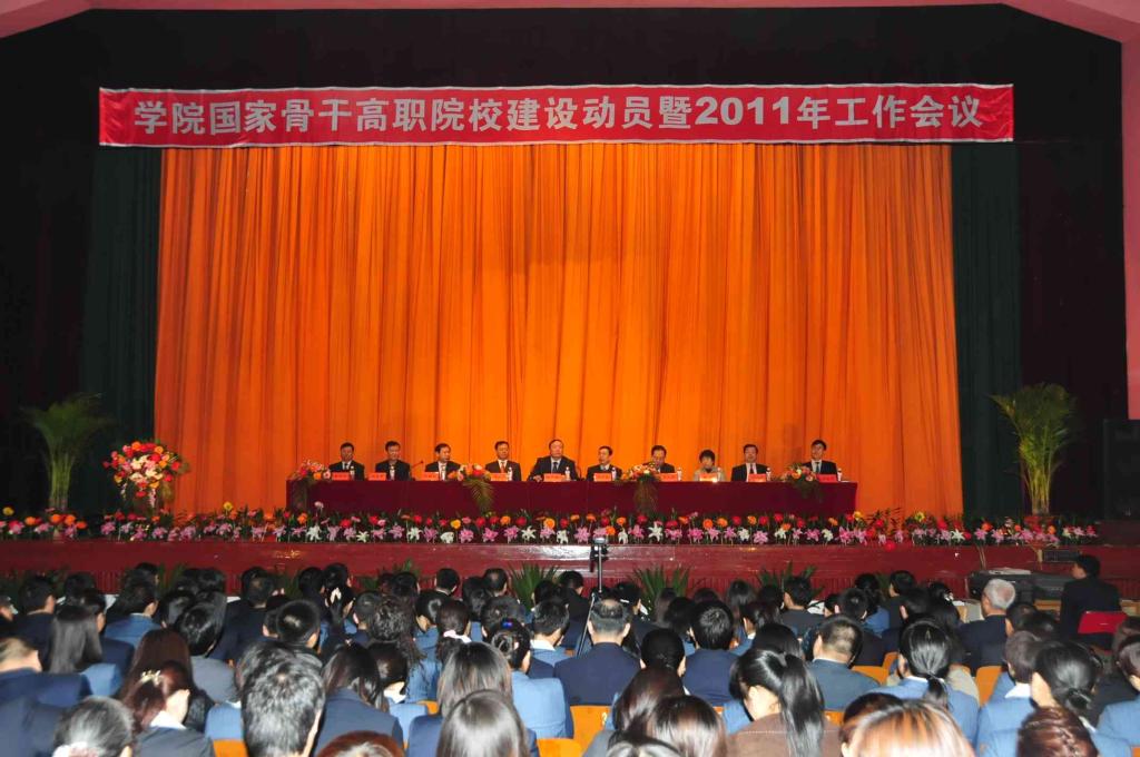 学院党委书记冯玉龙做了题为《抓住机遇乘势而上为建设国家骨干高职院校而努力奋斗》的动员报告。冯书记在报告中指出成功跻身国家骨干高职院校建设单位行列是学院历史上具有里程碑意义的大事,为学院提供了前所未有的发展机遇。学院师生员工要思想统一,凝神聚力,团结一致,攻坚克难,志在必得。加强专业建设、创新人才培养模式、师资队伍建设、实训基地建设、校企合作体制机制建设、社会服务与辐射能力建设、创业中心建设、对外合作交流等八个方面的工作力度,充分发挥骨干辐射作用,为我省经济社会更好更快发展培养培训更多人才,为我省和全国高职教育事业的改革和发展做出贡献。
