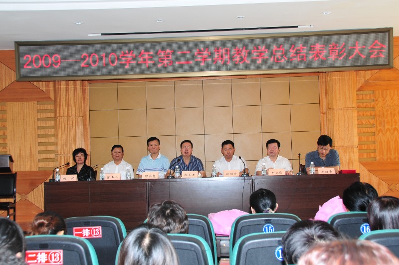 9月10日下午,学院在经济报告厅召开2009-2010学年第二学期教学工作总结表彰大会。院党委书记冯玉龙同志,院长赵继会同志,副院长何承贵同志、刘公远同志,党委副书记张玉山同志,副院长郑福贵同志,教务长何莉同志等出席会议。大会由院长赵继会同志主持。