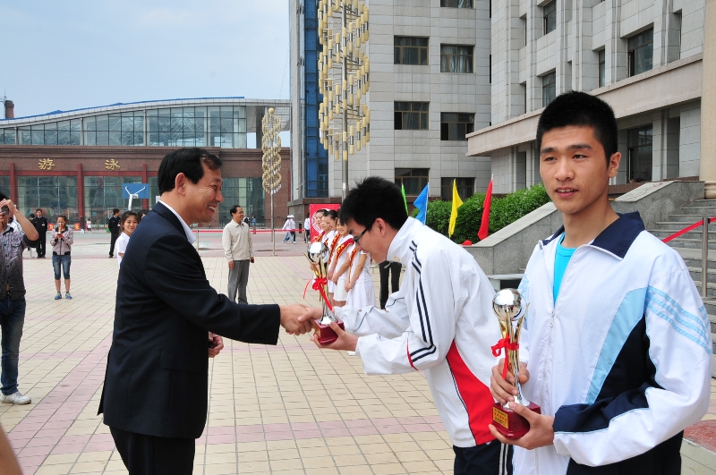 红旗招展,彩旗飘飘,在阵阵掌声和喝彩声中,学院第十六届田径运动会闭幕式于5月28日上午11:10在学院田径场举行,大会由副院长刘公远同志主持。
