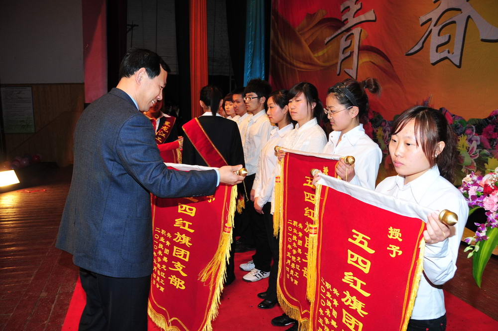 5月5日下午13时,学院2010年五四表彰大会暨纪念五四运动91周年建团88周年“青春赞歌”文艺演出在俱乐部举行。学院党委书记冯玉龙同志、院长赵继会同志、党委副书记张玉山同志、副院长郑福贵同志等学院领导出席大会,学院有关部门负责人及各系主任、团总支书记、辅导员、学生代表等1000余人参加会议并观看了演出。
