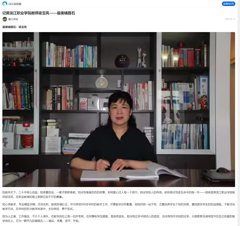 【QQ浏览器】记bevictor伟德官网教师梁玉凤——最㺯铺路石
