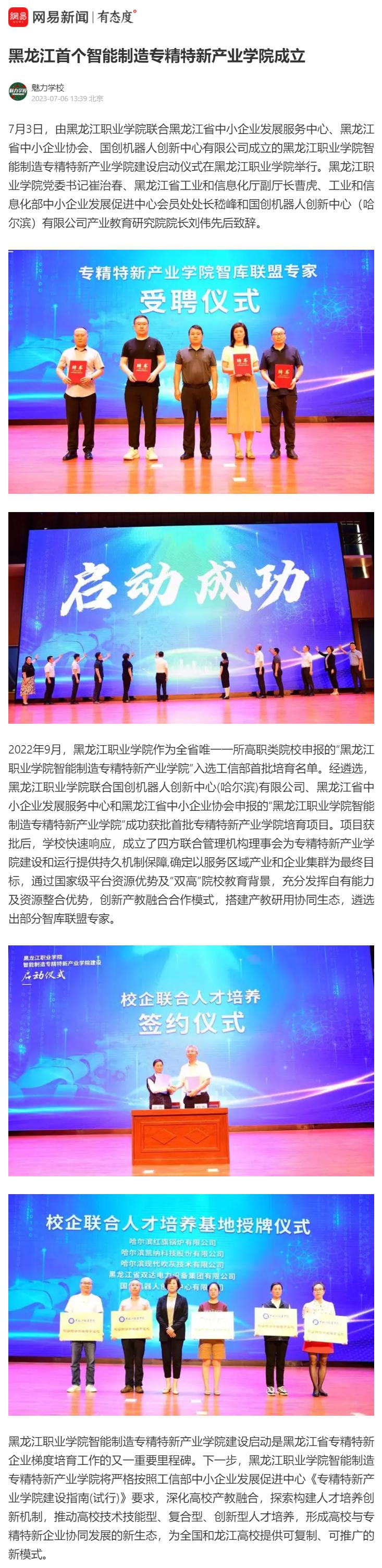 【网易新闻】黑龙江首个智能制造专精特新产业学院成立