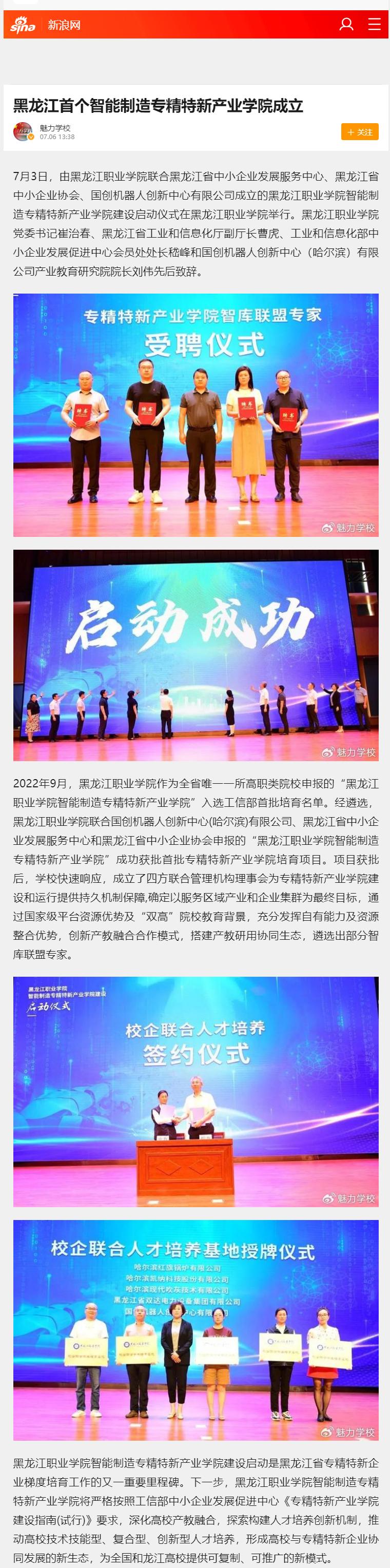 【新浪新闻】黑龙江首个智能制造专精特新产业学院成立
