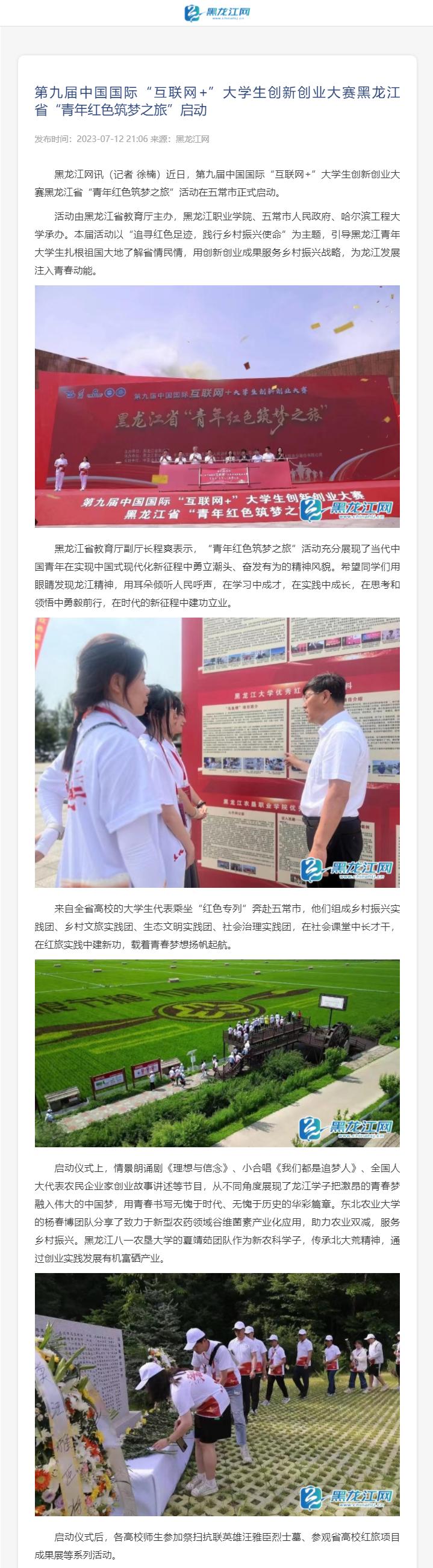 【黑龙江网】第九届中国国际“互联网+”大学生创新创业大赛黑龙江省“青年红色筑梦之旅”启动