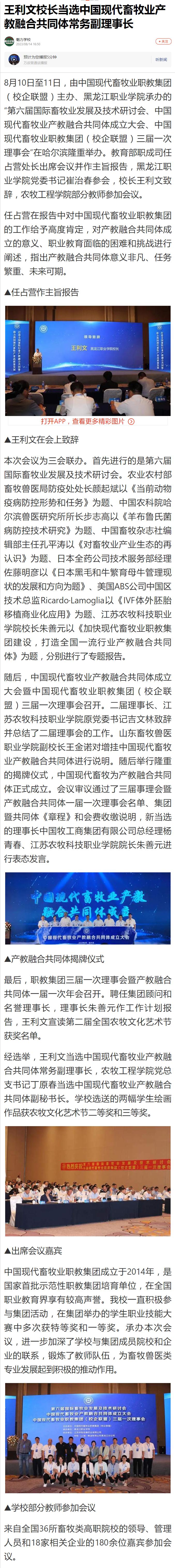 【搜狐】王利文校长当选中国现代畜牧业产教融合共同体常务副理事长