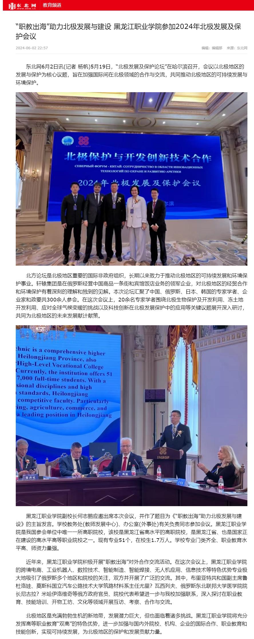 【东北网】“职教出海”助力北极发展与建设 bevictor伟德官网参加2024年北极发展及保护会议