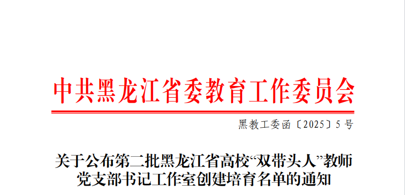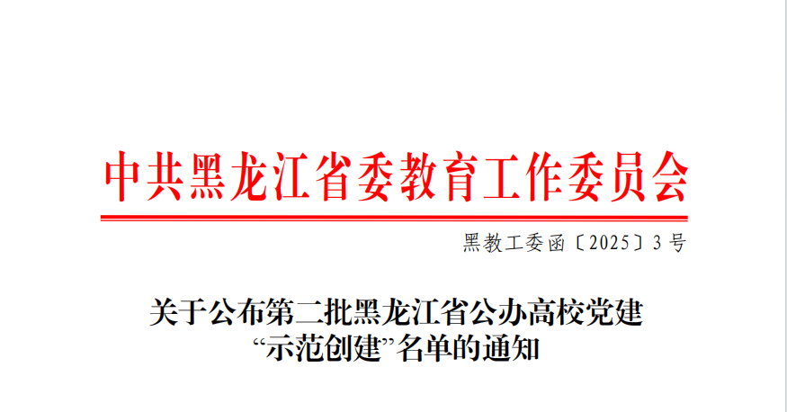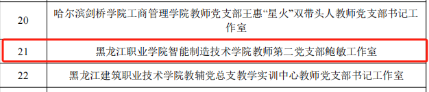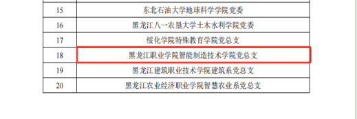 3月25日,黑龙江省委教育工委公布了第二批黑龙江省公办高校党建“示范创建”名单,伟德官网智能制造技术学院党总支成功获批全省公办高校党建工作标杆院系创建培育单位,能源与汽车工程学院教师党支部和农牧工程学院教师党支部成功获批全省公办高校党建工作样板支部创建培育单位,智能制造技术学院教师第二党支部鲍敏工作室获批第二批黑龙江省高校“双带头人”教师党支部书记工作室创建培育单位。