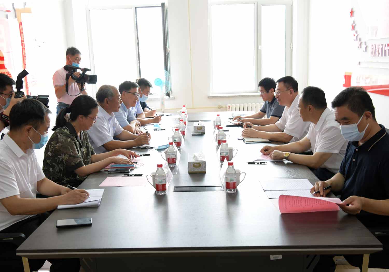▲陈海波一行与学校领导交流座谈