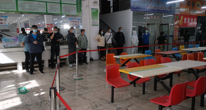 ▲各部门负责同志在饮食服务中心观摩防控演练