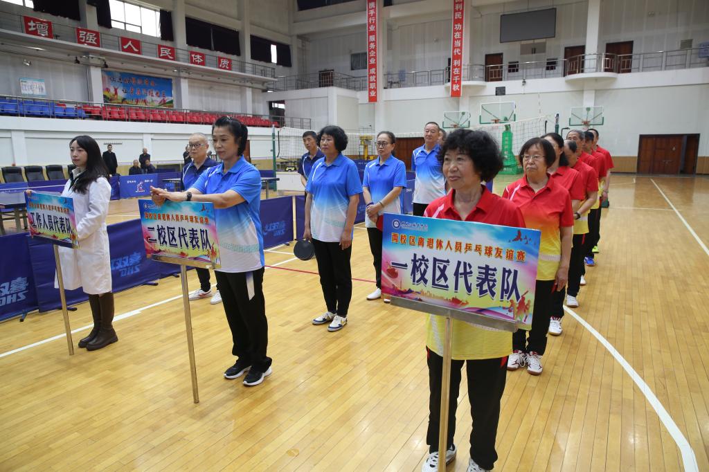 5月29日,两校区离退休人员乒乓球友谊赛在第二校区体育馆举行。学校离退休人员工作处处长邢常伟参加活动并讲话,第二校区综合工作领导小组副组长王福胜到会并宣布球赛开始。两校区近30名参赛选手参加比赛。