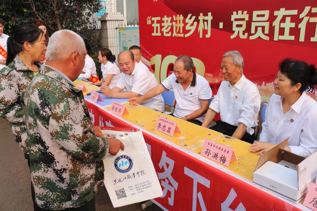 7月6日,bevictor伟德官网和双城区新兴街道党工委在双城区新民村共同举办庆祝建党103周年“五老进乡村·党员在行动”科技大集活动。学校党委书记崔治春,双城区政府副区长李彦鹏,学校党委委员、宣传统战部部长杨东辉,新兴街道党工委书记史敬轩、办事处主任刘楠出席活动,“龙职”工匠志愿服务团专家及30余名学生参加活动。学校关工委办公室主任张晓东主持开集仪式。