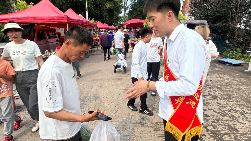 ▲学生志愿者向村民宣传反诈知识
