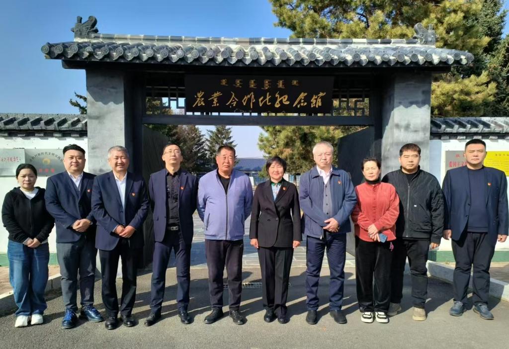 在全国文明村镇——双城区希勤村,离退休人员工作处党总支班子成员参观了农业合作化纪念馆,与村“两委”成员就基层党组织合作共建、创新发展进行交流研讨。