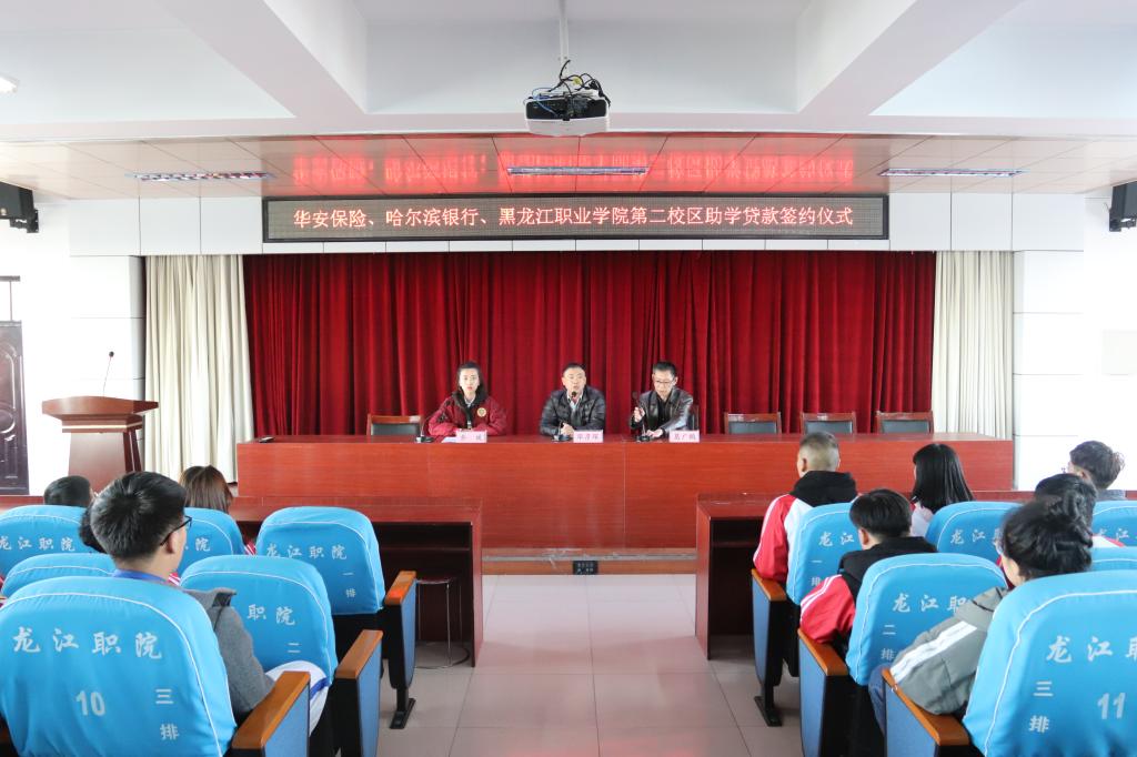 会上,毕彦琛向学生们介绍了国家助学贷款相关政策、还款方式、信贷影响及注意事项等,毕彦琛表示华安保险公司将协同哈尔滨银行一起做好助贷工作,为同学们提供最优质服务,让学生学费没有负担,学习没有后顾之忧;葛广鹏向华安保险对伟德官网贷款工作的支持表示感谢,与学生们分享国家助学贷款政策的深远意义和诚信还款对未来人生的影响,并对学生们提出要时刻感念国家的好政策,努力学习,履行约定,交出一份完美的诚信答卷;学生代表曹瑞在会上发言并带领所有贷款同学进行刻苦学习、诚信做人、认真履行还款业务、维护个人信用的承诺。
