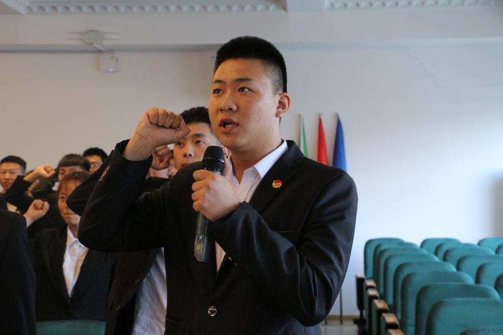 会上,杜超宣读《关于拟推荐朱鑫浩、陈宇航、郭思雨为2019-2020学年校团委兼职学生副书记的决定》;唐晓恬宣读《关于校团委老师分工分管的决定》;陈佳男宣读《关于拟任命2018级校学生会、校社团联合会、校新媒中心主要学生干部的决定》;王婷婷宣读《关于拟任命2018级校社团联合会各社团社长的决定》;朱鑫浩宣读《关于聘任邹良潇等6名2017级学生干部为2018级校级学生会、校社联、校新媒顾问指导的决定》,邹春雷为邹良潇等六名同学颁发聘书;陈宇航宣读《关于2018级校学生会、校社联、校新媒主席团分工分管的决定》;郭思雨宣读《2018级校学生会、校社联、校新媒主要学生干部“自律15条”》。会上,2017级各学生组织主席和2018级各学生组织主席进行了会旗交接,并进行了学生组织的口号展示,2018级校学生会主席张昊睿同学带领全体学生干部进行入职宣誓。