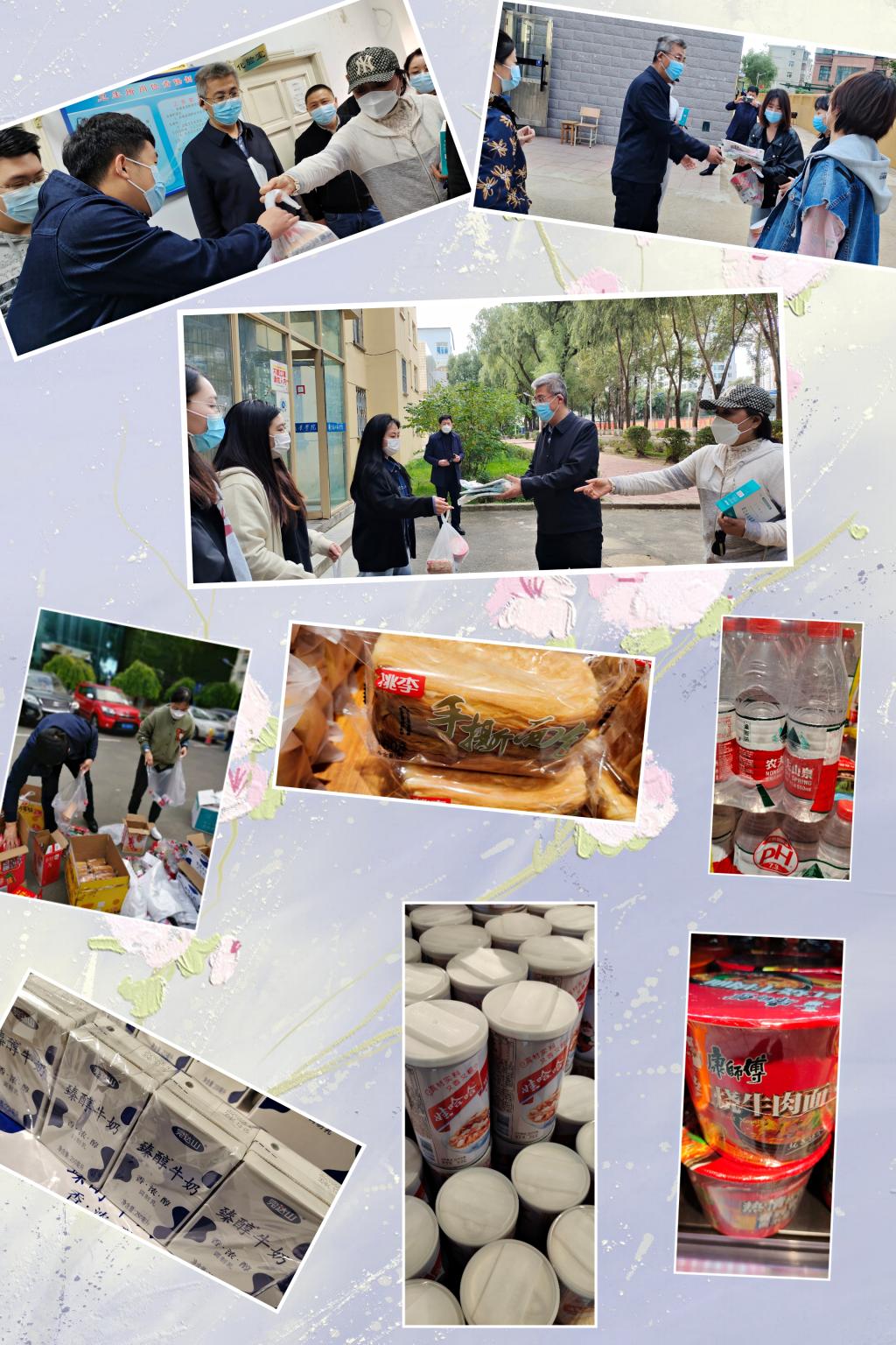 国庆假期,慰问一线教职工。10月2日,学校领导与校工会共同深入实地开展慰问工作,向国庆期间依然坚守在疫情防控一线的执勤保卫人员、医务工作人员、学工执守人员、及党员志愿者们表达节日的问候,送上了方便面、面包、牛奶、八宝粥等暖心食品。